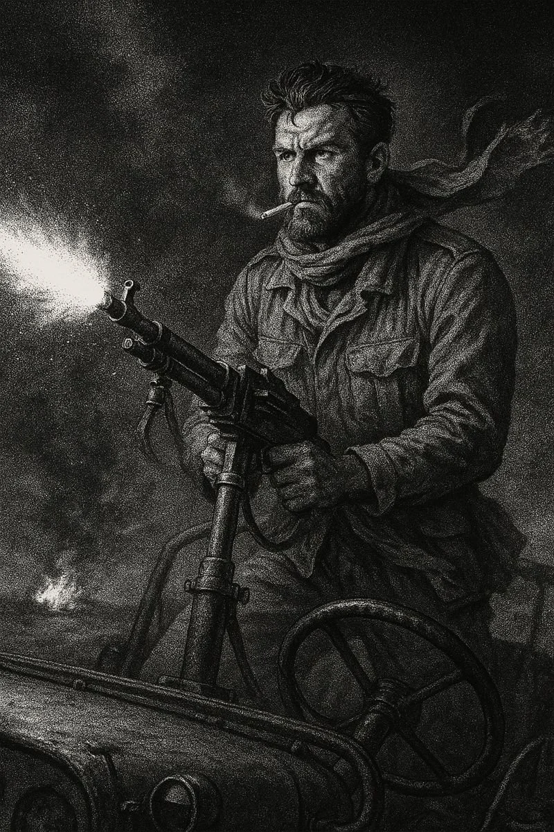 He led night raids like a conductor drunk on artillery. Picture it: jeeps tearing through the dunes, engines screaming like damned souls, twin Vickers guns vomiting tracer fire. Mayne sat up front, eyes bright, cigarette between teeth, shouting coordinates or insults — usually both. His men called him “The Big Man.” The Germans called him “the Devil Who Comes in the Night.” Everyone was right.